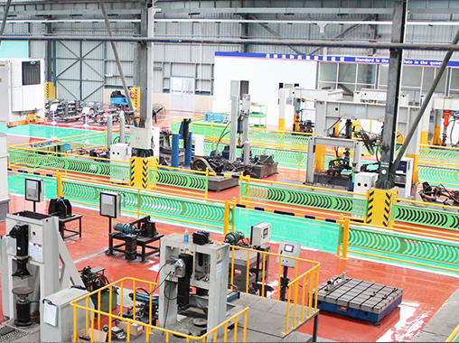 富華重工擁有12個大型生產(chǎn)車間,工廠總占地面積達(dá)1,000,000平方米。公司主要生產(chǎn)設(shè)備采用世界知名企業(yè)品牌,所有關(guān)鍵加工和熱處理和熱處理工藝屬于世界領(lǐng)先水平,主要關(guān)鍵零部件橋殼、齒輪、制動器、半軸等都是自制件,有效地保證了產(chǎn)品的質(zhì)量。